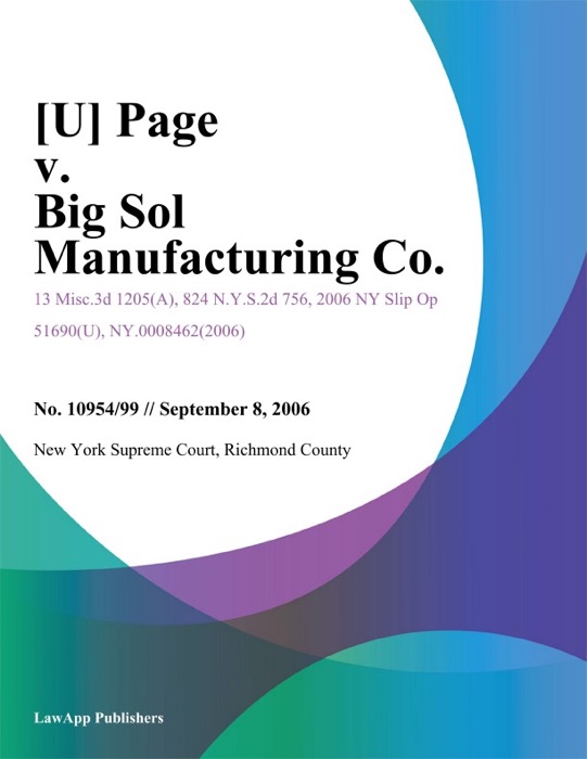 [DOWNLOAD] "Page v. Big Sol Manufacturing Co." by Richmond County New York Supreme Court # Book PDF Kindle ePub Free